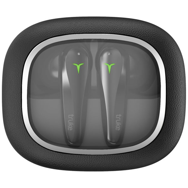 truke New Launch Crystal Dyno Leather Finish True Wireless in Ear Earbuds w/Spatial Audio, 70H Battery Fast Charge Ear Buds, 13mm Driver HiFi Sound TWS, 40ms Ultra Low Latency, 4Mics ENC- RavenBlack