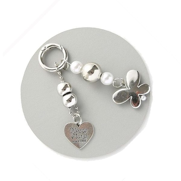 KC Keychain Phone Wrist Strap Pearl Beaded Mobile Phone Charm Hanging Bracelet Finger Ring Holder butterfly Charm For Phone, Purse, Camera, Bags, Case Cover For Girls Women Silver