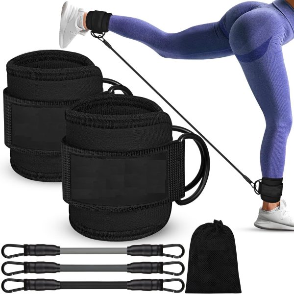 Leosportz Natural Rubber Ankle Resistance Bands|for Working Out with Cuffs|Leg Butt Training Workout Equipment for Kickbacks Hip Gluteus Training Exercises (Ankle Straps with Resistance Bands)