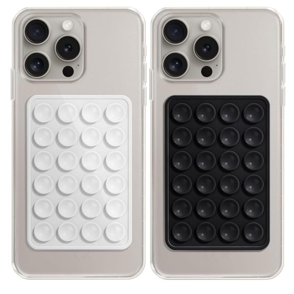 Meyaar 2 Pack Silicone Suction Phone Case Mount, Silicon Adhesive Phone Grip for Smartphones, Hands-Free Mirror Shower Phone Holder for Selfies, Reels (Black + White)