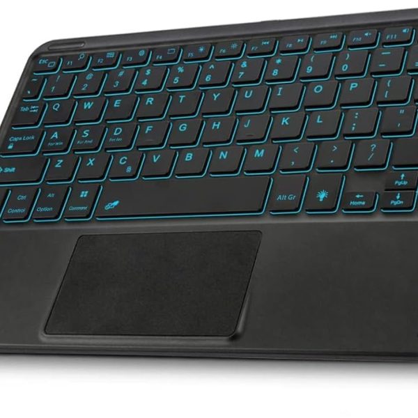 ProElite Ultra-Slim Bluetooth TouchPad Keyboard Upto 11.5 inch Portable Wireless Rechargeable Keyboard for Apple iPad, iPhone, Samsung/Lenovo Tablets, iPadOS/Android Built-in 7-Colors Backlit, Black