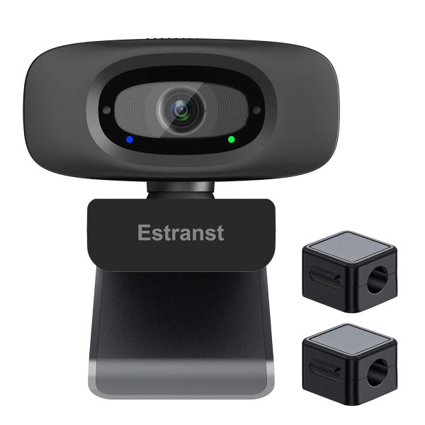 Estranst 2K HD Webcam with Privacy Cover & Noise-Canceling Microphone, External USB Web Camera for PC Laptop Mac Desktop Computer Monitor, Includes 2pcs Cable Organizers