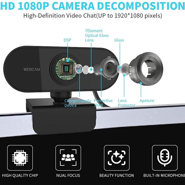 FnXĀ® 1080P HD Streaming USB Computer Web Camera for PC Desktop & Laptop with Mic, Video Calling, Conferencing, Webcast – Driver-Free Installation,