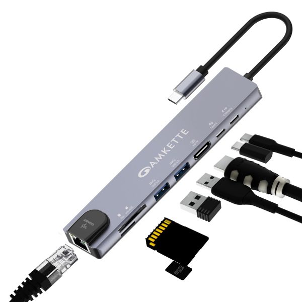 Amkette 8-in-1 Pro 1Gbps Docking Station for Laptop,Type C hub with 100W Power Delivery&USB C Data Transfer, 4K HDMI,USB 3.0,1Gbps Ethernet,SD/TF Card Reader,for All Type C Devices-MacBook&Laptops