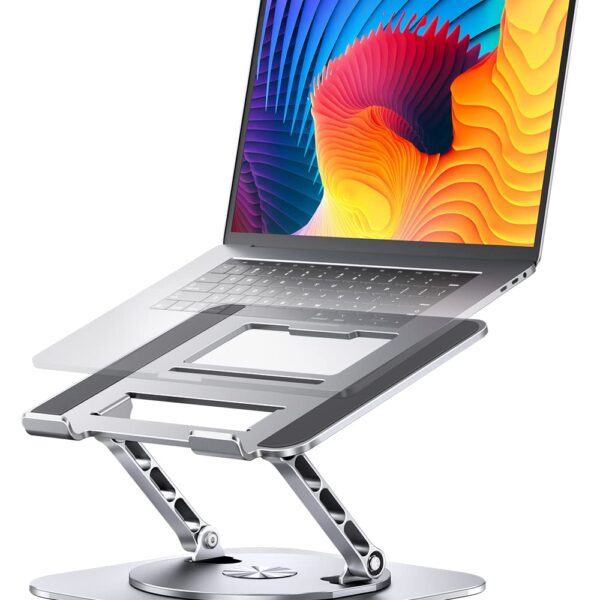 AOEVI Adjustable Computer Stand with 360 Rotating Base, Ergonimic Foldable Laptop Riser for Desk Compatible with MacBook Pro/Air Notebook up to 16 Inches, Silver